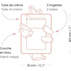 – Accessoires inclus : 1 couche, 2 lingettes et 1 tube de crème factice.
